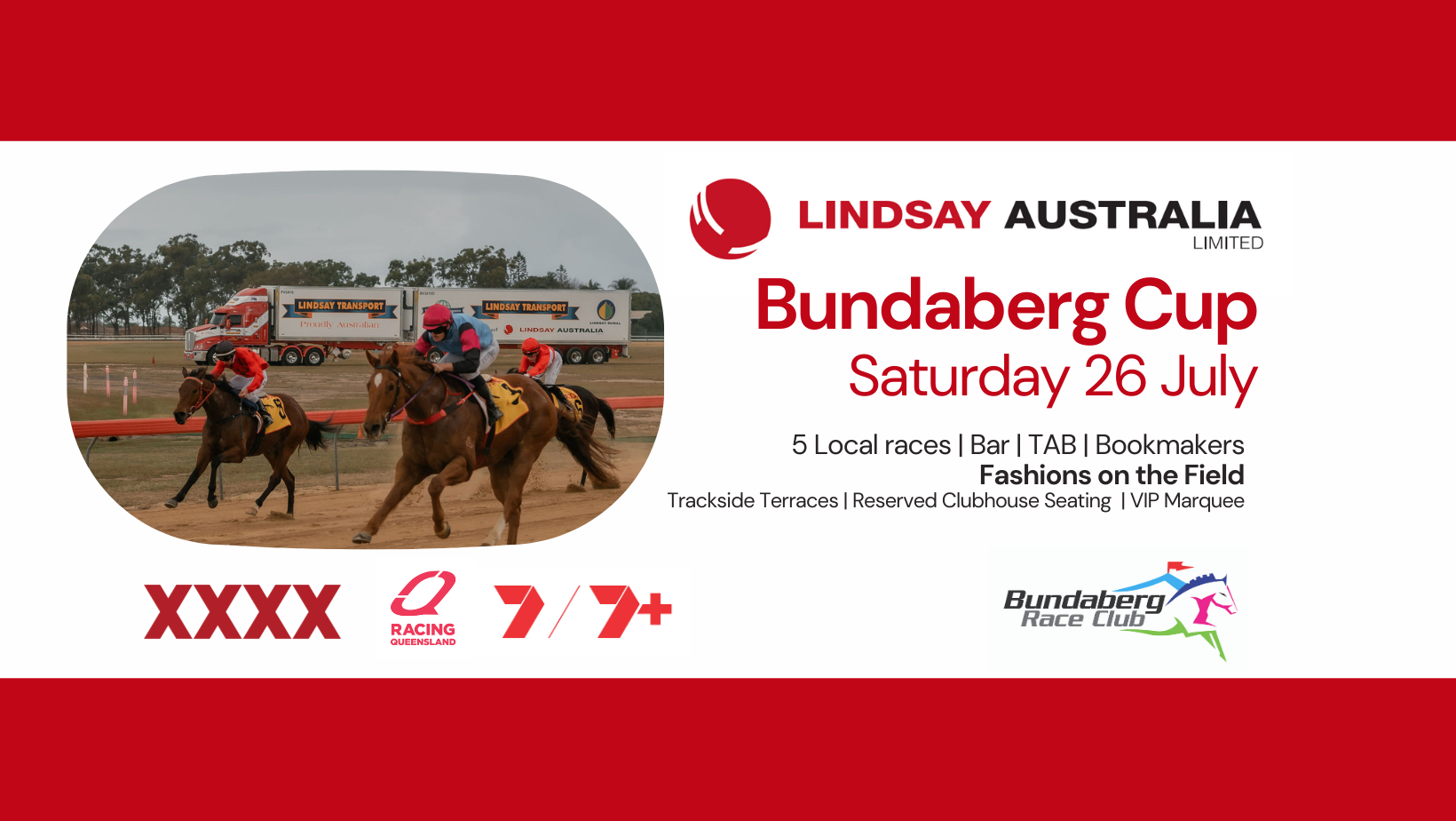 Event includes 5 local TAB races, bar, bookmakers, raffle, TAB facilities, and Bundy Burger Company catering and canteen.